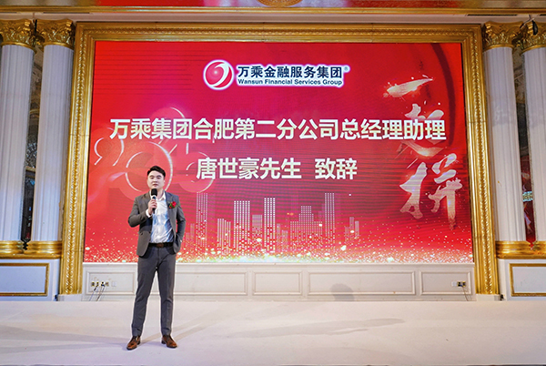 合肥第二分公司总经理助理唐世豪代表全体员工作表态发言。他感谢韩总裁在岁末百忙之中专程来合肥为第二分公司举办总裁荣誉宴及庆生,这是对合肥第二分公司最大的鼓舞与鞭策!合肥第二分公司必不辜负总裁室的厚望,以梦为马,全力以赴,打好本年度的收官之战,用优异的业绩为万乘基业长青作出贡献。