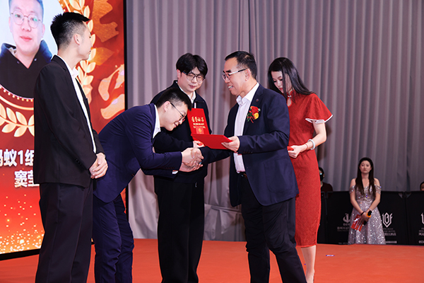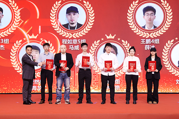 领导致辞后,一曲励志歌曲《红日》将议程带到了表彰环节。万乘集团副总裁韩超为3名获得“优秀新人奖”的小伙伴颁发获奖证书和奖金;万乘集团董事会秘书刘润东为6名获得“优秀员工奖”的小伙伴颁发获奖证书和奖金;韩晓总裁为3名获得“优秀团队长奖”的小伙伴颁发获奖证书和奖金。