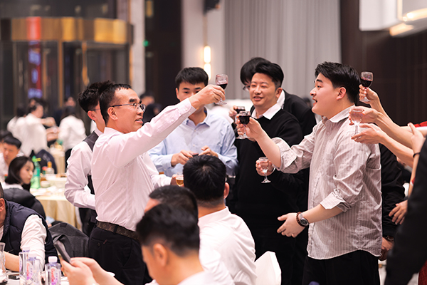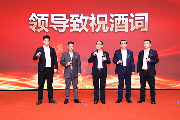 颁奖结束后,一曲热情奔放的爵士舞《黄金时代》点燃了晚会热烈的气氛。爵士舞后,主持人邀请各位领导上台敬酒。韩晓总裁、刘润东董秘、韩超副总裁、白云冰总经理、张远远总经理助理联袂上台敬酒。宾主共同举杯,祝德州分公司一周岁生日快乐,祝德州分公司业绩长虹,财源广进!