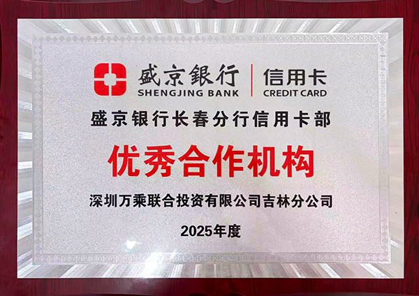 开门见喜,一马当先。2026年2月10日,盛京银行长春分行信用卡部授予吉林万乘“2025年度信用卡合作催收“优秀合作机构”荣誉称号。