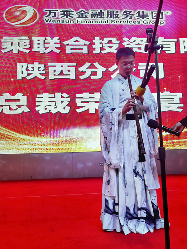 在主持人的引导下,陕西万乘的美女帅哥们表演了歌舞、诗朗诵、箫管独奏等精彩节目,而穿插其中的五轮抽奖活动,更是不断地把晚宴推向高潮。