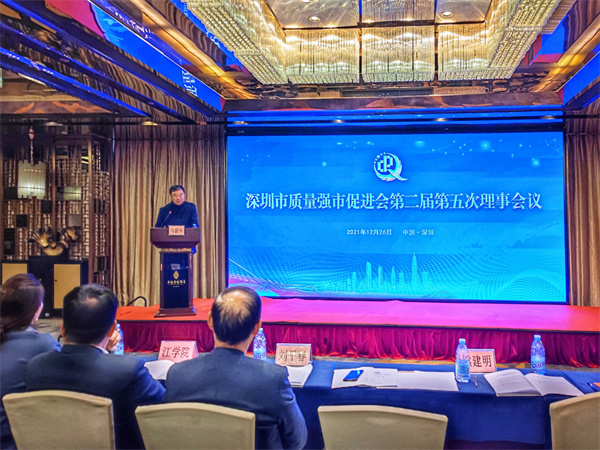 2021年12月26日下午,深圳市质量强市促进会第二届第五次理事会议在深圳华强广场酒店召开。受韩晓理事的委托,杨帅副总裁代表万乘集团出席了本次理事会议。