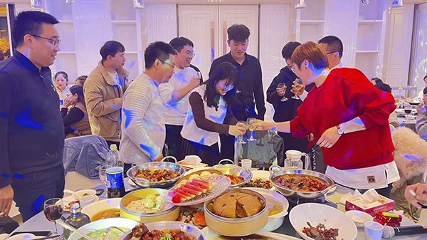 随后,由张总,董总,孙云雷副总上台敬酒,为全体员工送上了最诚挚的新春祝福。