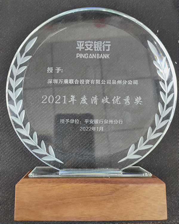 寒风凛冽,冬阳暖暖。在这年终岁末之际,泉州万乘传来喜讯,荣获平安银行泉州分行2021年度“清收优秀奖”。2022年1月12日,泉州万乘总经理任然和主管何琦应邀代表团队前往平安银行泉州分行参加表彰大会并领取荣誉奖杯。