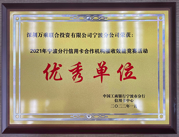 在此次会议上,宁波万乘获此殊荣,体现了中国工商银行宁波市分行信用卡中心对宁波万乘的重视和肯定,也充分彰显了万乘集团的实力。2022年宁波万乘将继续发扬万乘的狼性精神和拼搏精神,牢记行业标准,在合法合规催收的同时,交出一份亮丽的成绩单,回报工商银行宁波市分行对宁波万乘的信任与厚爱,实现银企双赢。