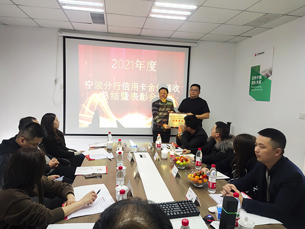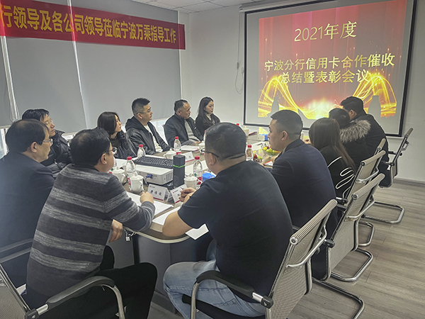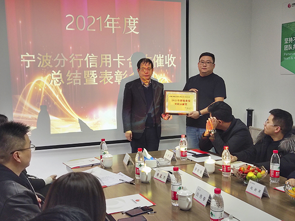 2022年1月14日,中国工商银行宁波市分行在宁波万乘召开2021年度信用卡合作催收总结暨表彰会议,并为宁波万乘荣获中国工商银行宁波市分行信用卡中心2021年催收业绩“突出贡献奖”及2021年宁波分行信用卡合作机构催收效能竞赛活动“优秀单位”两项大奖颁发荣誉奖牌。宁波万乘副总经理邱岩携业务经理朱涛热情接待了来访领导。