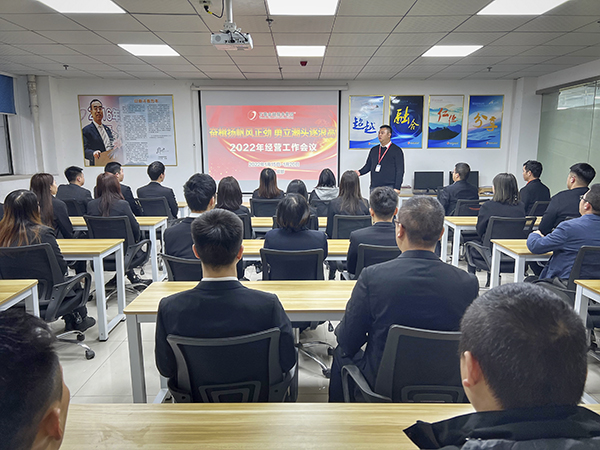甘总首先传达了集团创始人/CEO/总裁韩晓先生在集团2022年经营工作会议上的工作报告内容及工作精神,同时结合各营业机构2021年的经营数据,总结了襄阳万乘取得的成绩,并客观分析、阐述目前襄阳万乘的现状与不足,提出2022年工作规划及方向: