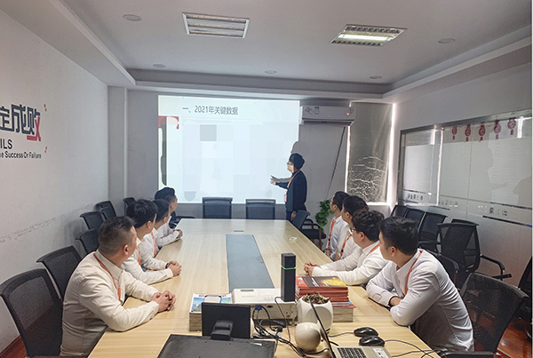 刘总首先传达了集团创始人/CEO/总裁韩晓先生在集团2022年经营工作会议上的工作报告内容及工作精神,同时结合各营业机构2021年的经营数据,总结了温州万乘取得的成绩,并客观阐述了目前温州万乘的现状与不足,提出2022年工作规划及方向: