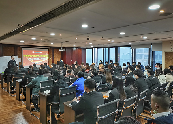 首先,周总传达了集团CEO/总裁韩晓先生在2022年经营工作会议的指示,围绕以“奋楫扬帆风正劲 勇立潮头逐浪高”为主旨的工作精神,回顾与总结2021年度杭州万乘运营情况,肯定了杭州万乘取得的成绩,也指出了工作中的不足。