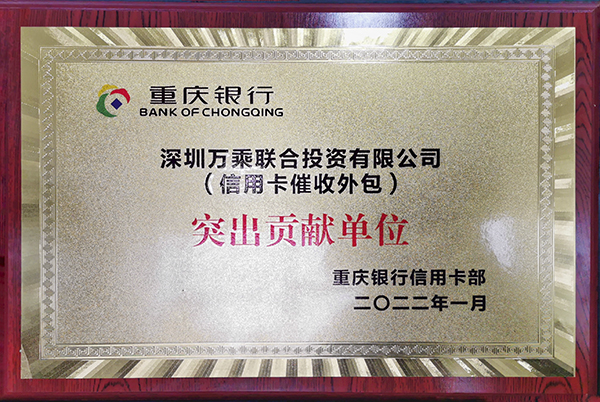 重庆万乘获此殊荣,充分体现了重庆银行信用卡中心对万乘良好信誉及服务质量的认可,也是对重庆万乘催收综合实力的肯定。