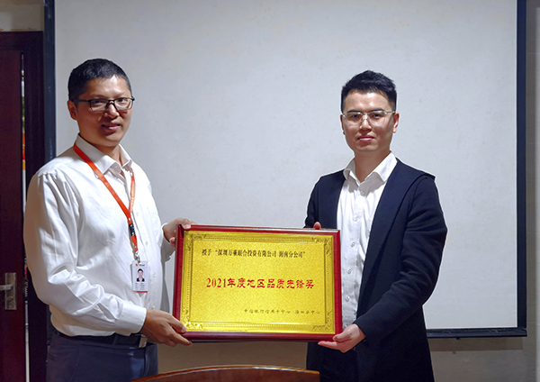 金牛辞旧岁,猛虎迎新春。冬日暖阳,海南万乘传来佳音。2022年2月10日,中信银行信用卡中心海口分中心李尚芽经理一行莅临海南万乘检查指导工作,并为海南万乘荣获中信银行信用卡中心海口分中心“2021年度地区品质先锋奖”颁发荣誉奖牌。海南万乘总经理李章平、不良资产管理七部副经理陈策、主管徐世江一同热情接待了来访领导。