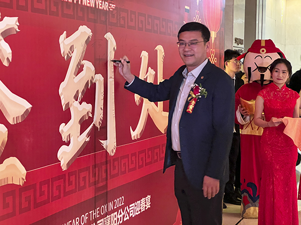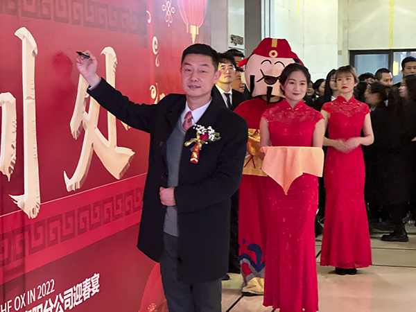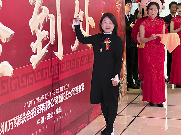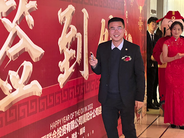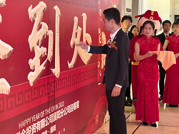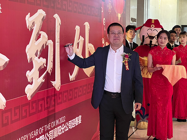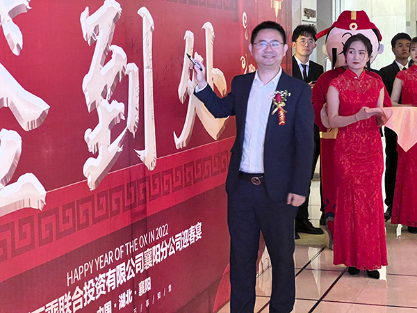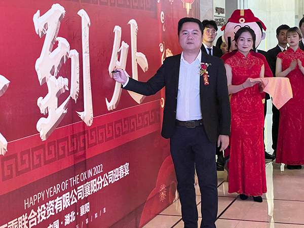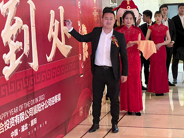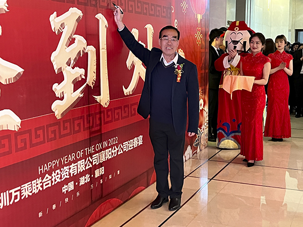 襄阳万乘副总经理甘涌代表全体将士郑重表态:感谢韩总裁不辞辛劳来到襄阳,将虎年的第一场迎新团拜会送给了襄阳分公司,这是襄阳万乘的巨大荣光,也是对襄阳万乘“青春梦之队”的巨大鼓舞。襄阳万乘全体将士必不负总裁的殷切期望,奋勇拚搏,尽快实现月度佣金收入500万元的新目标,再迎“总裁荣誉宴”,以优异的业绩为万乘的宏图大业贡献力量。