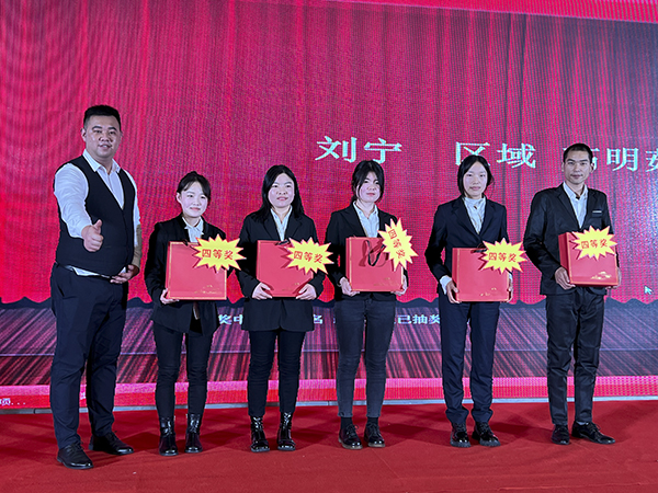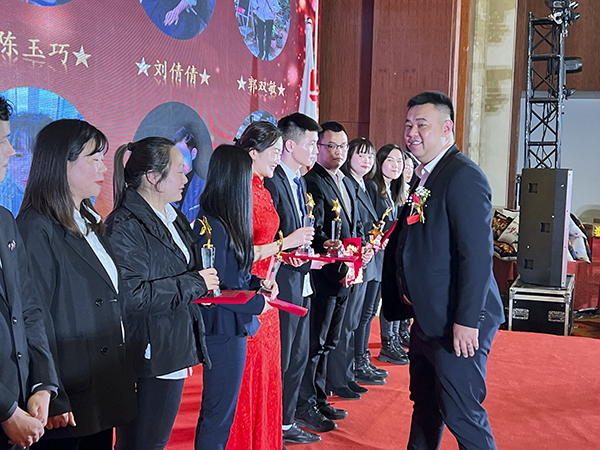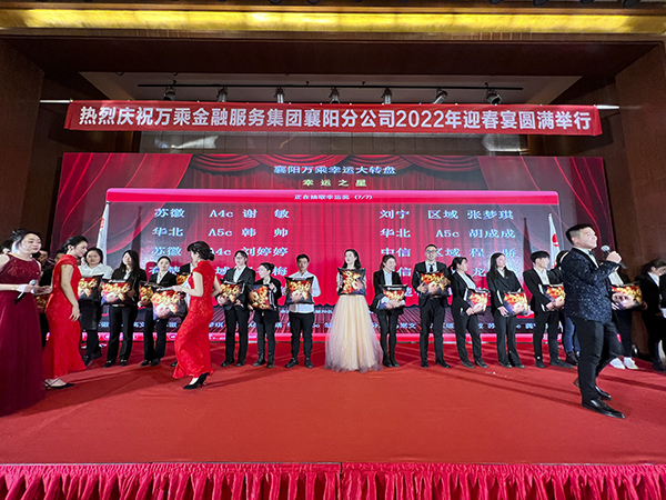 领导讲话后,表彰环节拉开大幕。襄阳万乘副总经理甘涌向获得“优秀员工奖”的12名员工和获得“最佳进步奖”的2名员工颁发获奖证书、奖杯和奖金;荆州万乘总经理助理杜晗向获得“优秀品质奖”的员工颁发获奖证书、奖杯和奖金;武汉万乘副总经理白云冰向获得“最佳勤奋奖”的员工颁发获奖证书、奖杯和奖金;集团总裁助理兼湖北大区总经理韩超向获得“最佳创佣奖”的员工颁发获奖证书、奖杯和奖金;集团副总裁崔明绪向获得“最佳组长奖”的3名员工颁发获奖证书、奖杯和奖金;集团董事会秘书刘润东向获得“最佳部门奖”的优秀团队长颁发获奖证书、奖杯和奖金;韩晓总裁向获得“五年长期服务忠诚奖”的6名员工颁发获奖证书、奖杯和奖金。