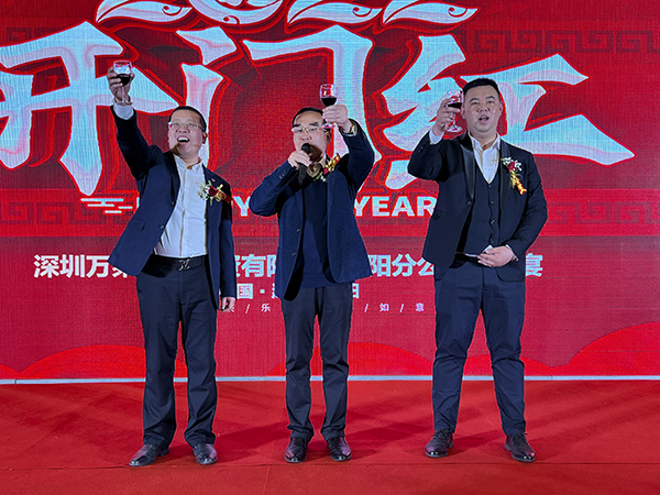 随后,韩晓总裁与韩超总裁助理、甘涌副总经理联袂登台,向全体员工和各位嘉宾敬酒。宾主共同举杯,祝“青春梦之队”活力永在,祝襄阳万乘全体将士新春快乐,祝襄阳分公司早日达成月度创佣500万元的新目标!