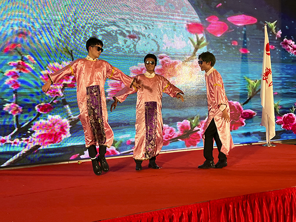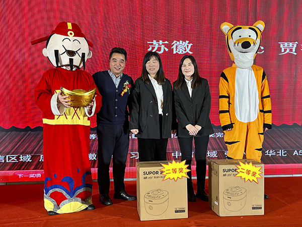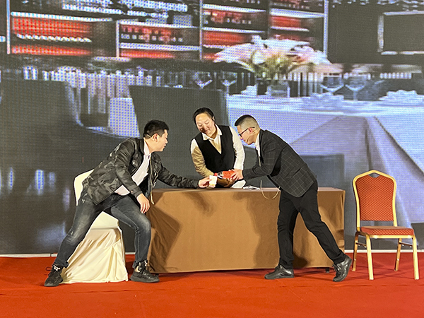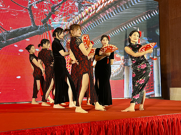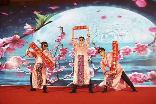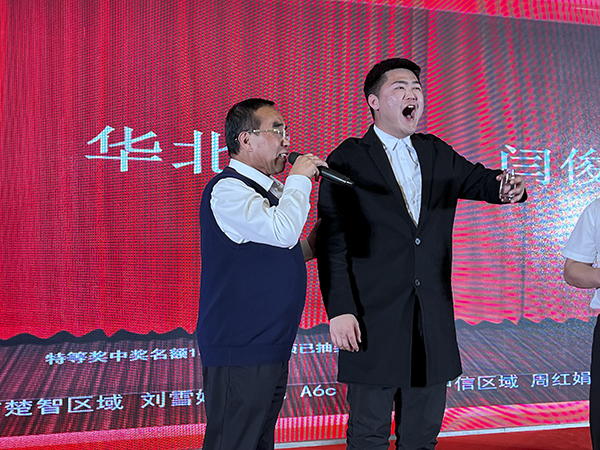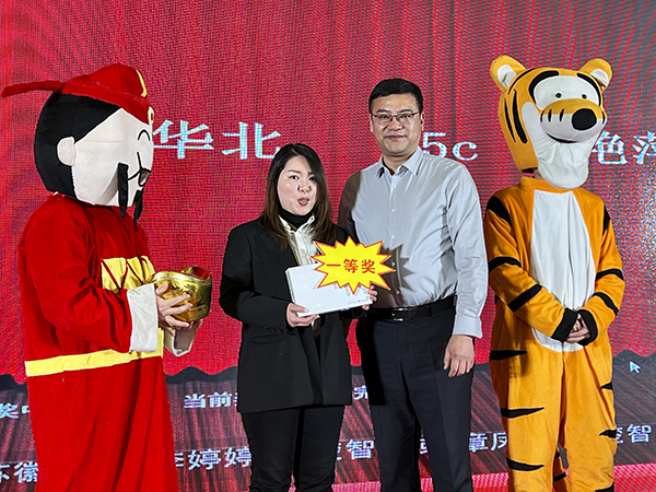 在优美的背景和音乐声中,一支旗袍古风的扇舞拉开了文艺表演的序曲。多才多艺的襄阳万乘的美女帅哥们表演了歌舞、小品等精彩节目,赢得了一阵阵掌声与喝彩声。韩晓总裁、董事会秘书刘润东、集团品牌部总经理莫鸿斌也分别登台,献上了自己的拿手歌曲。而穿插其中的抽奖环节和不断抽出的大奖,则是不断将团拜会推向高潮。