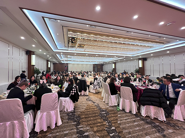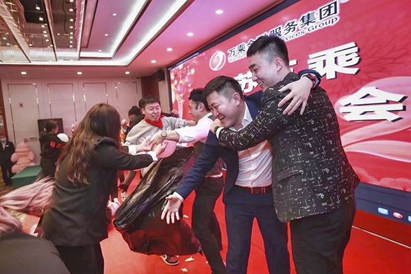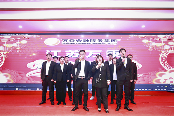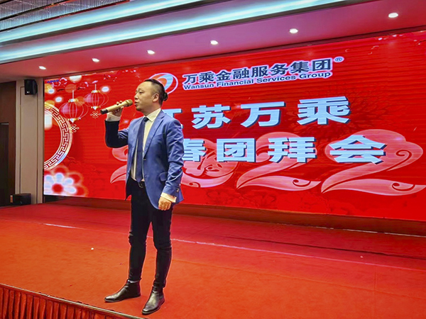晚上18:08,江苏万乘2022年新春团拜会在南京金陵之星大酒店三楼隆重举行。江苏万乘全体员工欢聚一堂,共度联欢。