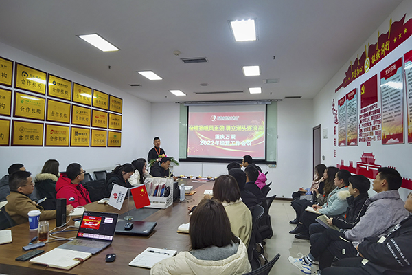 首先,重庆万乘总经理孙云传达了集团2022年经营工作会议的主要内容及集团CEO/总裁韩晓先生在2022年经营工作会议的精神,结合2021年集团各营业机构的年度数据,深度分析了重庆万乘的运营情况,重点阐述了重庆万乘需要改进的地方,并提出了2022年工作规划及方向。