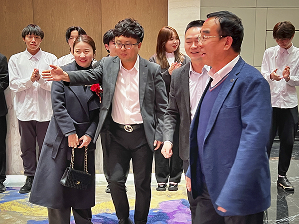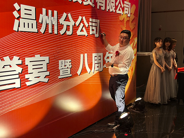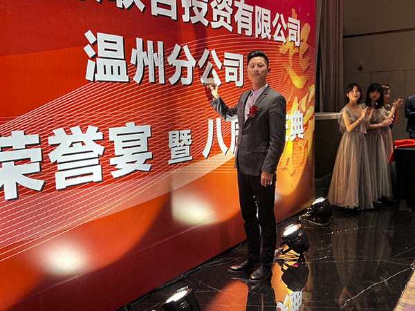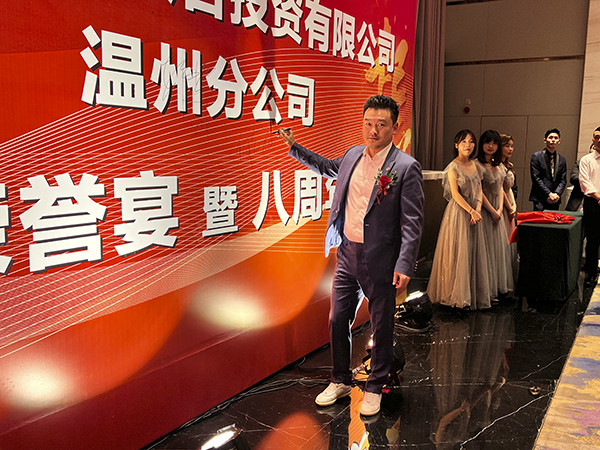 韩晓总裁发表了热情洋溢的讲话。韩总裁指出,去年初我来温州为你们举办单月佣金收入突破百万的“总裁荣誉宴”时我们曾约定,等你们佣金收入突破200万元,我再来为你们庆功。温州万乘的将士们不忘约定,以咬定青山不放松的精神和高昂的斗志一路拚搏,最终在去年11月份佣金收入一举突破200万元,兑现了向集团总裁室的承诺,公司发展也跨上了一个新的高度。韩总裁冀望温州团队,借本次“总裁荣誉宴”及公司成立8周年庆典的双喜之利,在2022年再次发力,全力冲击月度佣金收入300万元的新目标,以优异的业绩,向万乘集团成立15周年献礼。