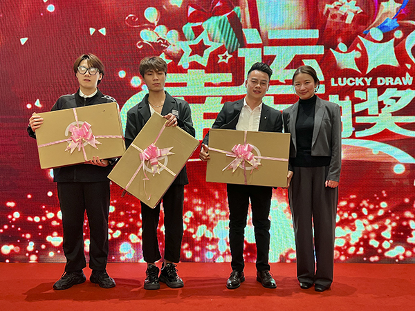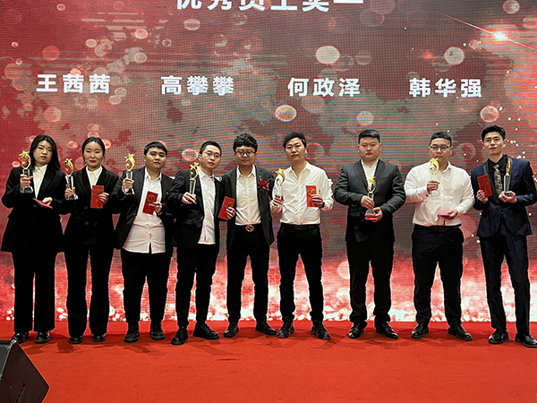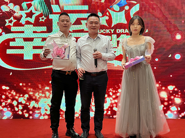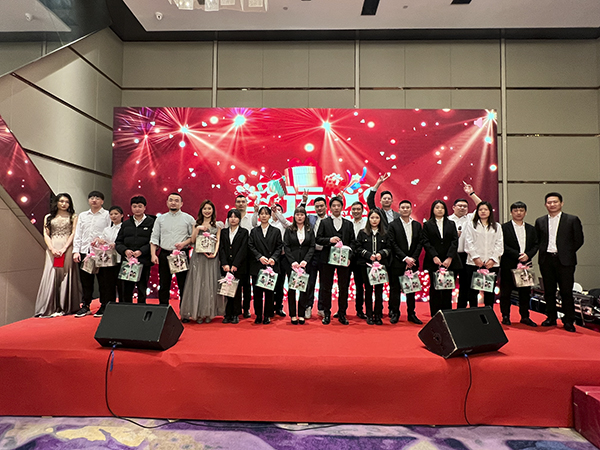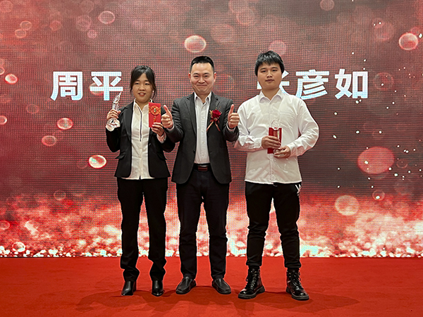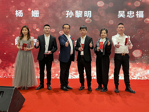 7时许,表彰环节拉开大幕。刘晓鹏副总经理向获得“优秀员工奖”的8名员工颁发奖杯和奖金;周卫平副总裁向获奖“后生可畏奖”和“优秀团队长奖”的2名员工颁发奖杯和奖金;韩晓总裁向获得“五年以上长期服务忠诚奖”的5名员工颁发奖杯和奖金。