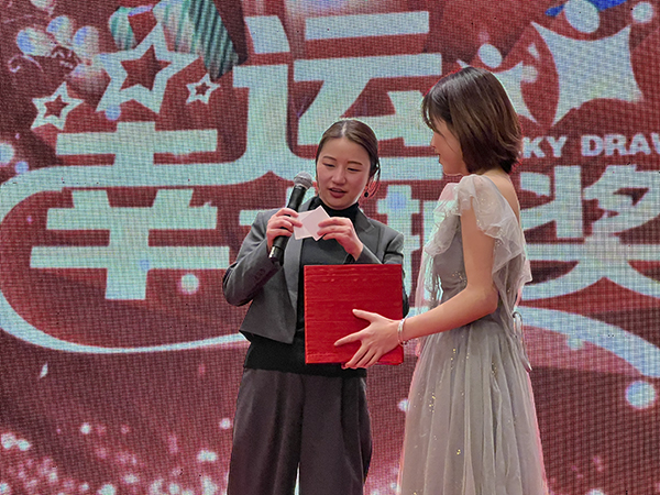 随后,在主持人的主持下,多才多艺的温州万乘的美女帅哥表演了精彩的文艺节目,而不断抽出的大奖,也不断将晚宴推向高潮。