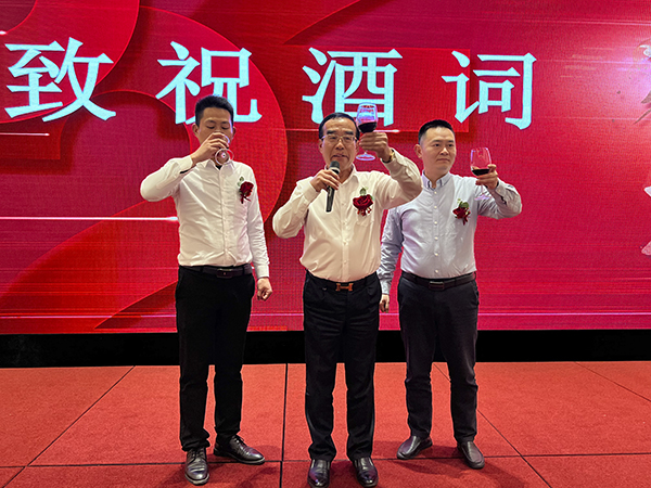 7时许,韩总、周总、柯总连袂登台,向全体员工和各位嘉宾敬酒。宾主共同举杯,祝衢州万乘财源广进,业绩长虹。