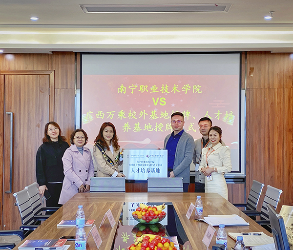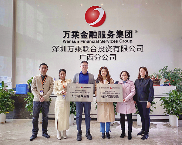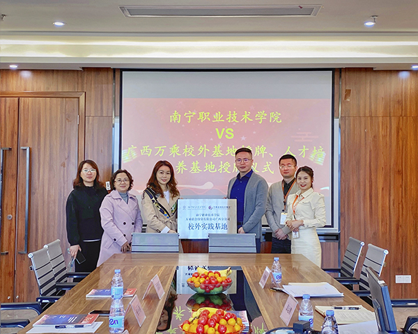2022年3月23日下午15点30分,昨日的雨水带了些许凉意,今日的骄阳犹如万乘的热情、带着掌声、笑声迎来了南宁职业技术学院财经学院为广西万乘授牌“校外实践基地”、“人才培养基地”。标志着双方在专业建设、实训基地建设、人才培养等多个方面合作关系的正式建立。广西万乘总经理谭运鹏、人事经理杨爱舅、业务主管巫蓉欢,南宁职业技术学院财经学院院长张小春,财经学院金融专业负责人莫嘉玲,财经学院金融团队教师王丽君出席了本次仪式。