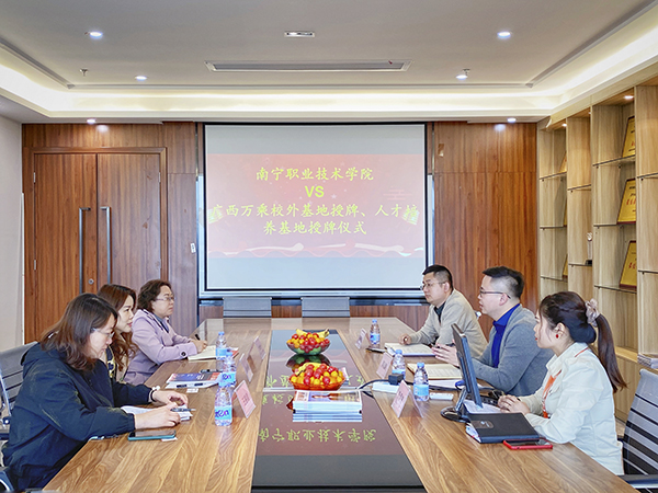 最后,谭总代表广西万乘全体员工对南宁职业技术学院财经学院院方领导表示真挚的感谢。强调了产教融合、校企合作对提高人才培养质量的重要性,为实现资源共享、优势互补、共同发展,校企本着“相互协作、互惠共赢”原则,围绕人才培养、协同育人、员工培训等相关事宜建立长效合作机制,达成深度合作。也希望通过这种方式为行业企业输送高素质技术技能型人才,实现专业与产业、企业、岗位的对接。目前我司共有4家学校合作,为今后双方进行深度全面校企合作搭建了桥梁。我们期待双方后续工作结硕果、合作共赢树典范。