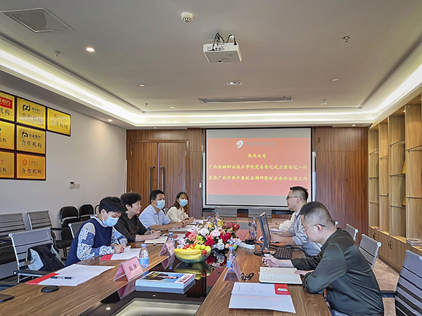 5月13日上午9点30分,广西金融职业技术学院党委书记沈立君,学生工作与招生就业处处长周海峰,就业科科长胡秀娟等6位领导走访广西万乘开展就业调研暨校企合作洽谈工作,广西万乘总经理谭运鹏、人事经理杨爱舅、业务主管巫蓉欢接待并出席了本次会议。