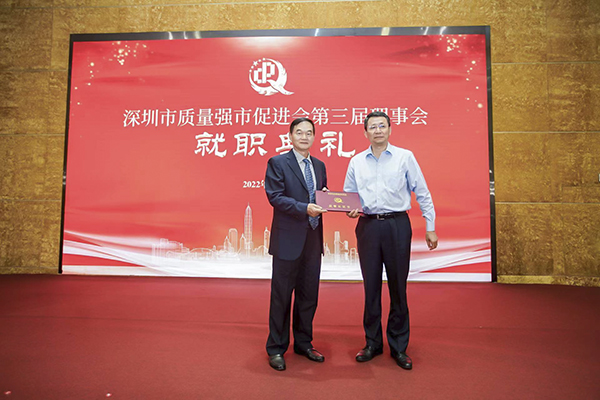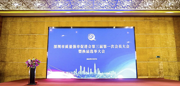 2022年5月27日,深圳市质量强市促进会第三届第一次会员大会暨换届选举大会在深圳万豪大酒店盛大举行。深圳市政协副主席徐友军、深圳市政府副秘书长吴优、深圳市科协主席、党组书记林祥,以及深圳市总工会、国资委、工信局、市场监督局、人社局、中小企业局等领导出席大会。