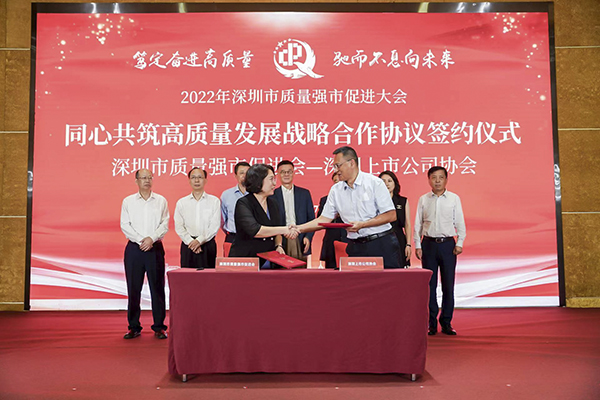 深圳市质量强市促进会副会长兼秘书长张文女士还与深圳市上市公司协会、深圳市战略性新兴产业发展促进会、深圳市建筑业协会签署了战略合作协议。