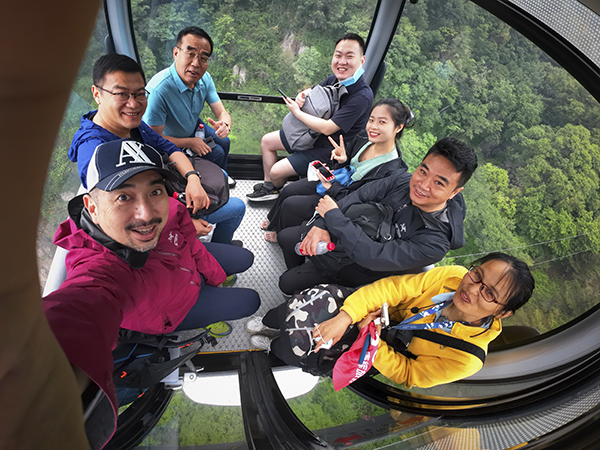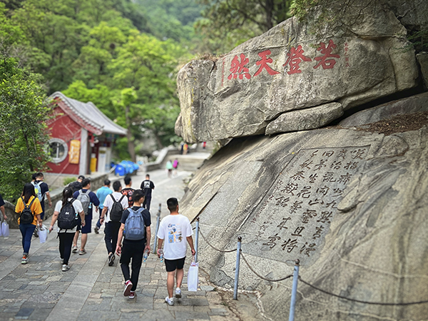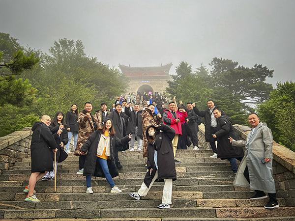 中餐后,万乘星星们前往泰山天外村乘坐环山车抵达中天门,中天门是泰山登山东、西两路的交汇点。此处为登顶半程,上下必经之地。