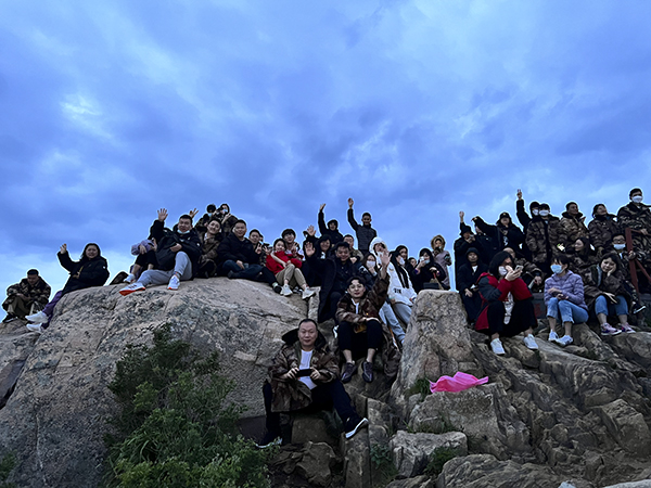 接近十八盘的时候电闪雷鸣,狂风“雹”雨。经过近三个小时的攀登,抵达泰山南天门。当我们抵达山顶欣赏到云海时,便觉得雷雨交加之下登顶泰山所付出的辛苦和劳累都是值得的,磨砺大家意志的同时,也给予了一份难以忘怀的记忆。