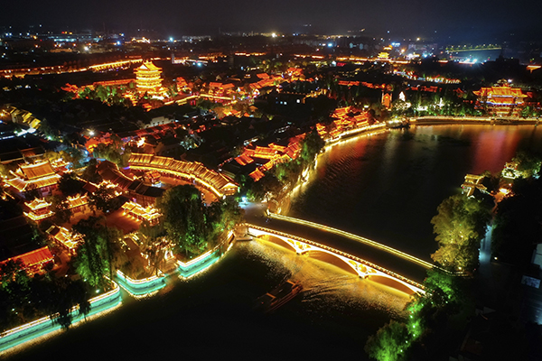 台儿庄古城的夜景和白天的风光,完全是两种截然不同的感受。古城的白天像清新脱俗的美人秀雅端庄,而入夜的古城则是另外一种意境,变成了如梦如幻的醉人景观……