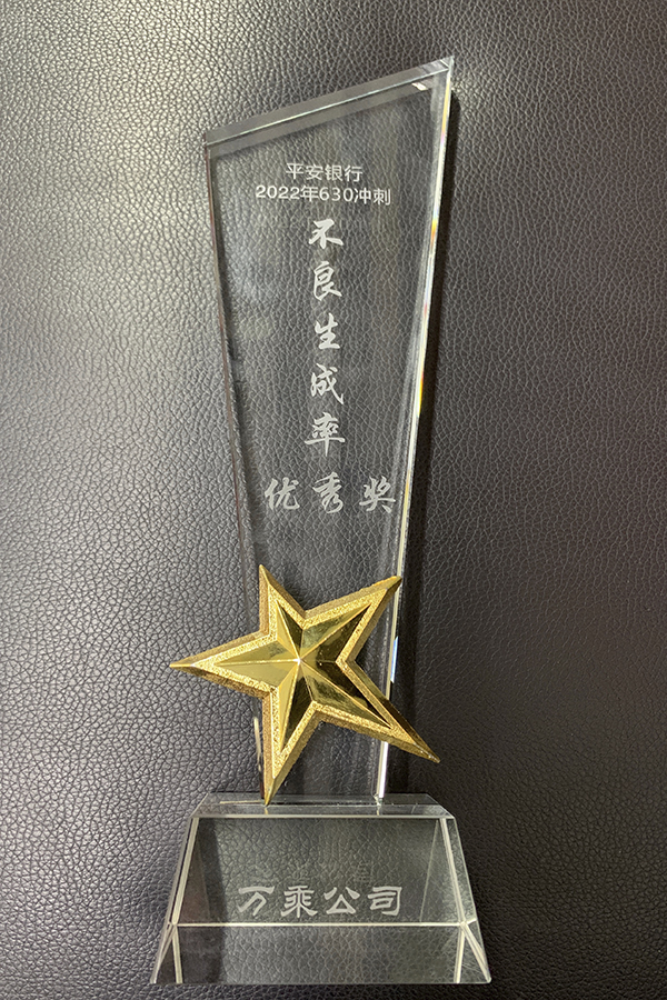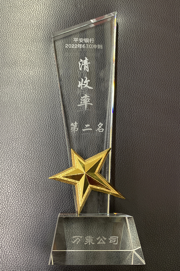 2022年7月,北京万乘荣获平安银行北京分行2022年630冲刺“不良生成率优秀奖”和“清收率第二名”两项大奖。