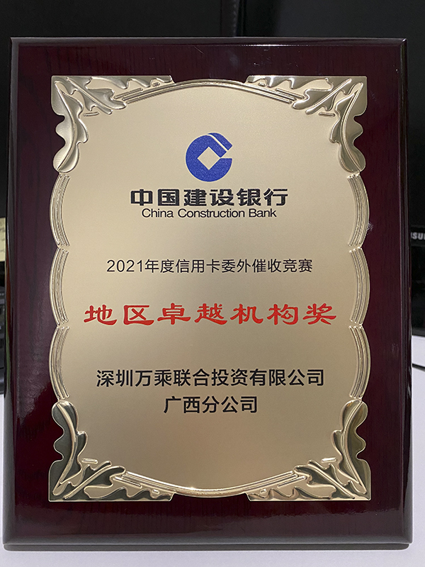 2022年7月,火热的邕城,是燃烧的季节也是收获的季节!广西万乘建行团队员通过不懈的努力,荣获中国建设银行2021年度信用卡委外催收竞赛“地区卓越机构奖”。