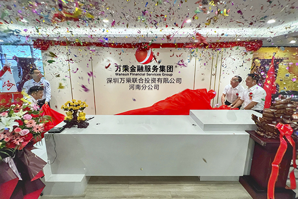 2022年8月23日16时28分,在飘舞的礼花中,在热烈的掌声中,在120多名员工的欢呼声中,万乘集团创始人/CEO/总裁韩晓、万乘集团董事会秘书刘润东、万乘河南大区总经理赵鹏、招商银行郑州分行个金部总经理李国永共同揭下覆盖在公司形象墙上的红绸布,象征着河南万乘红红火火开启了一个新的征程!