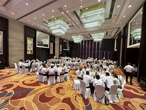 揭牌仪式结束后,韩总裁在五星酒店正方元国际大酒店筵开12席,庆贺河南公司乔迁之喜。宾主共同举杯,祝河南万乘乔迁大吉,业绩长虹,财源滚滚。
