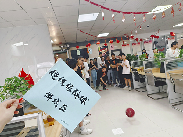 活动当天,行政部将公司职场划分了五个游戏区,一个画作区,一个手工区。公司每名小伙伴均可获得三张游戏券,凭劵可以参加任意游戏,获得积分为部门增光!每位小伙伴都积极参与,非常愉快,将平日里的工作压力,全都释放,尽情享受节日的乐趣!