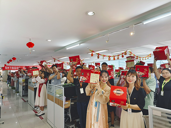 最后,杜总代表万乘集团湖北大区总经理室,对所有员工表达了最真挚的祝福,为所有小伙伴送上了中秋月饼礼盒,愿我们历尽阴晴圆缺,依旧星月交辉,永远阳光灿烂,永远朝气蓬勃!