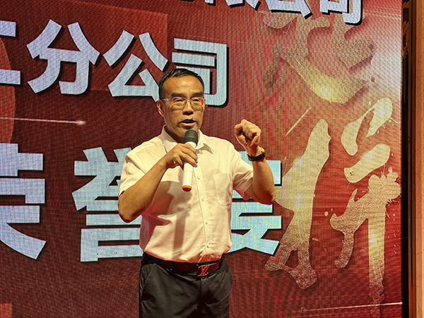 东莞第二分公司总经理助理颜腾飞代表120多名员工郑重表态:成绩已属于昨天,荣誉也成为过去,现在,战斗的号角已经吹响,新的奋斗目标已经确立,东莞万乘全体员工将秣马厉兵,攻坚克难,全力冲刺今年最后3个月,使命必达,不负韶华,不负万乘!