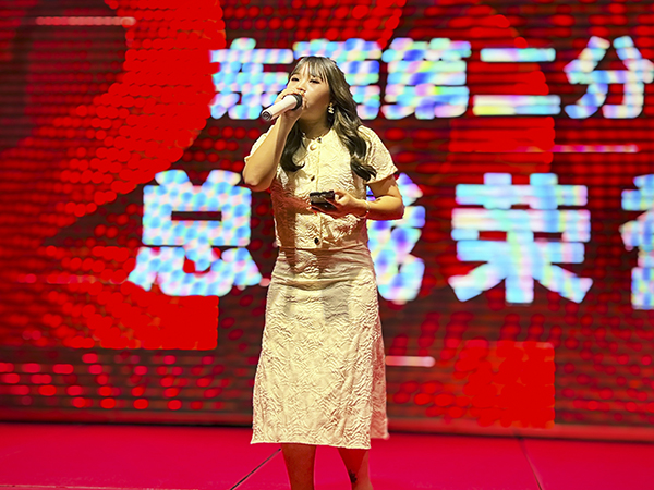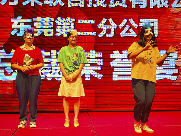 东莞第二分公司的美女帅哥们表演了歌舞、小品、诗朗诵等精彩节目为酒宴助兴,嬴得了一阵阵掌声与喝彩声。