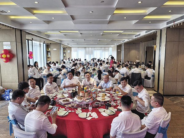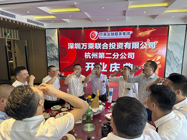 揭牌仪式结束并拍完“全家福”后,韩总裁在杭州开元西溪悦宴大酒楼筵开12席,庆祝杭州第二分公司盛大开业。韩晓总裁、周卫平副总裁、韩超总裁助理、鲁滕元总经理助理联袂登台,向全体员工和各位嘉宾敬酒。宾主共同举杯,祝杭州第二分公司开业大吉,财源广进,业绩长虹!