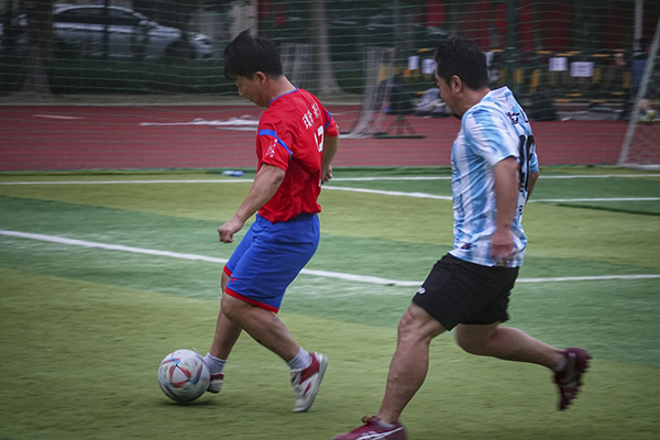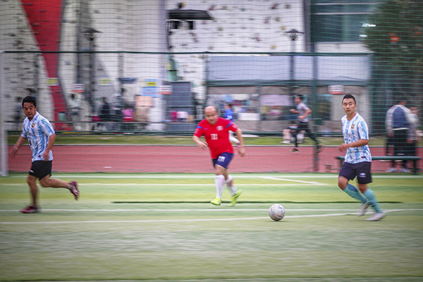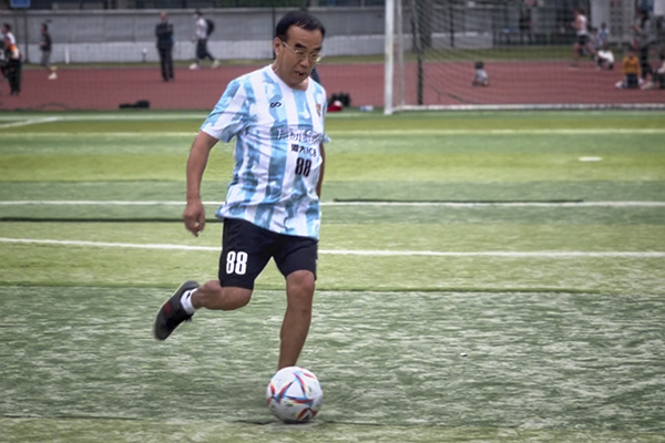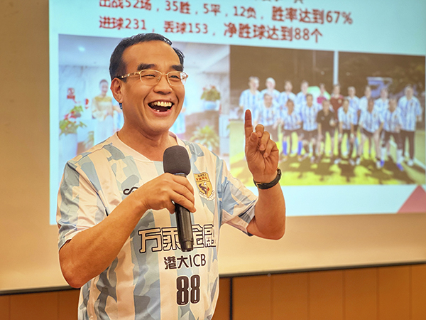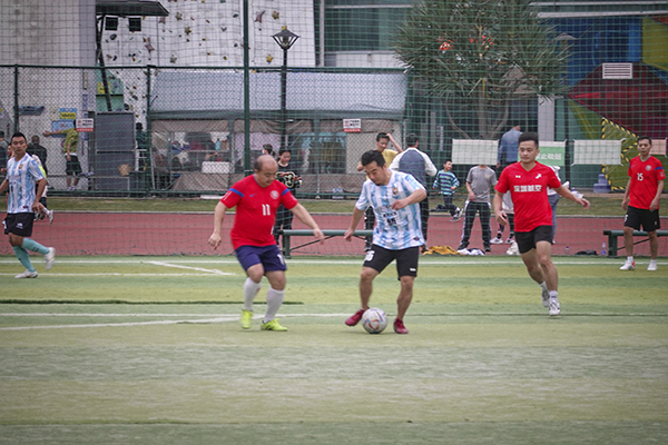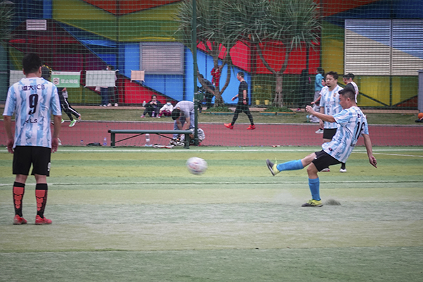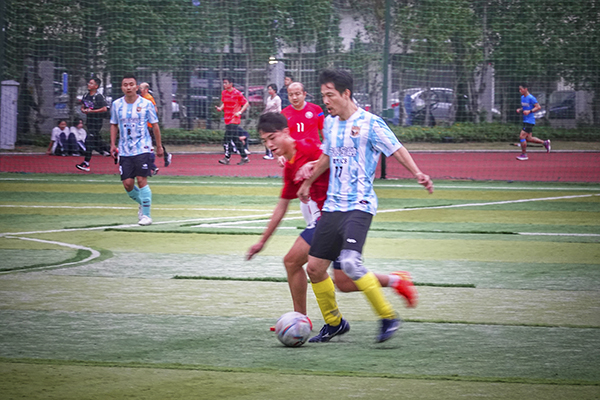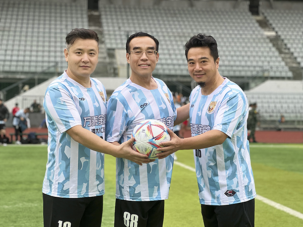 在拍完“全家福”后,万乘金融服务集团创始人/CEO/总裁韩晓先生身披万乘战袍,为本场球赛开球。在90分钟的比赛中,港大lCB足球队与老对手深圳不良人足球队进行了激烈的拼抢,最后港大lCB足球队以5:2的战绩获胜。万乘集团董事会秘书刘润东先生也亲自披挂上阵。