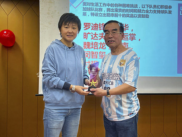 滕巍女士代表球队向万乘集团赠送了“第一赞助商”纪念奖杯。
