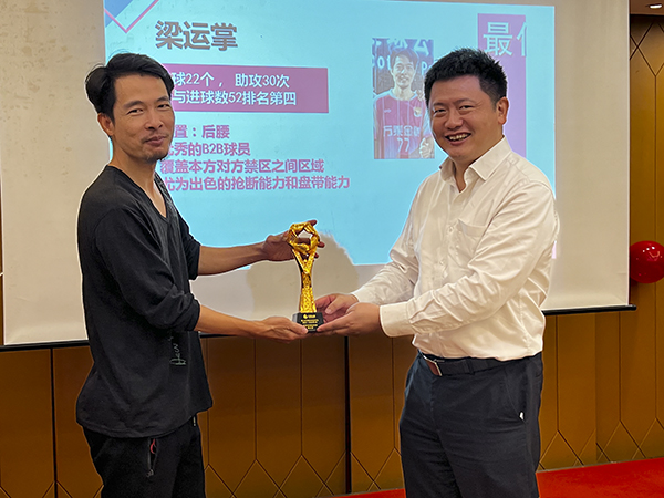 随后,韩晓总裁、万乘集团董事会秘书刘润东、万乘集团副总裁杨帅、球队队长罗迪锋分别向获奖球员、啦啦队员、队员家属颁发了奖杯和奖品。