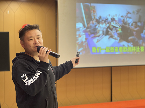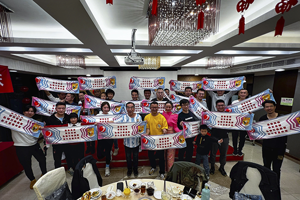 夜幕降临,华灯璀璨。晚上7时许,韩晓总裁在深圳福青楼大酒楼筵开3席,一年一度的球队生日宴会在欢乐的气氛中开始,32名球队队员、啦啦队员、队员家属、万乘集团高管人员共襄盛会。在播放球队4年成长历史的视频后,球队队长罗迪锋先生首先致辞,随后韩晓总裁发表了热情洋溢的讲话。韩总裁说,在过去的这个年度,球队共打了52场比赛,以35胜5平12负的优异战绩笑傲鹏城,打出了水平,赛出了风格,弘扬了万乘品牌,值得点赞。他感谢各位球员在工作、事业繁忙的情况下积极参加球队活动,让球队保持了活力;他感谢各位啦啦队员和球员家属对球队的无私支持;他也感谢球队名誉队员、国家女子足球队前队长滕巍女士对球队的支持和技术指导。未来的路很长,希望万乘与球队携手共进,快乐足球,互惠共赢。