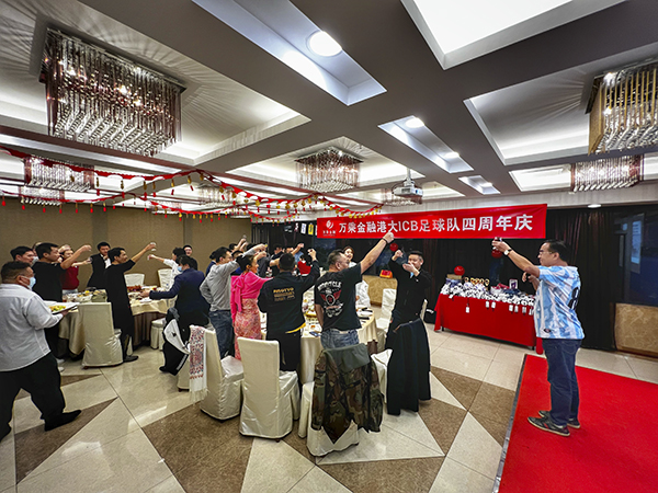 美酒佳肴,欢声笑语,其乐融融。宾主共同举杯,祝万乘金融港大lCB足球队4岁生日快乐,战绩长虹