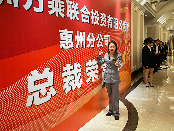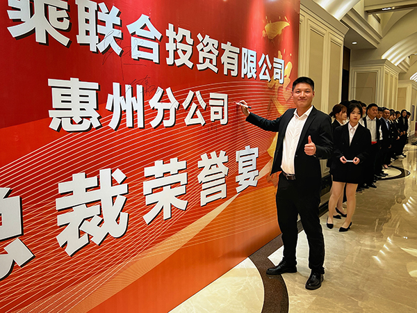 惠州分公司副总经理向东代表全体员工郑重表态:感谢韩总裁将万乘集团2023年的第二场“总裁荣誉宴”授予惠州万乘,这既是惠州万乘的巨大荣誉,也是惠州万乘前进的动力。今天,新的奋斗目标已经确立,冲锋的号角已经吹响,自己将带领惠州分公司全体将士,拚尽全力向着月度佣金收入260万元的目标发起攻击。誓言铿锵,使命必达,不负万乘,不负韶华!