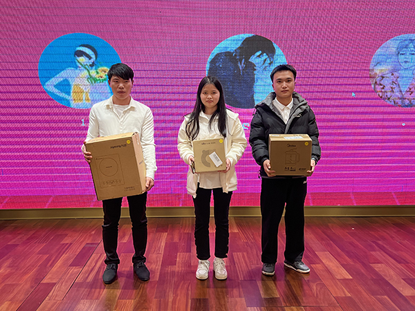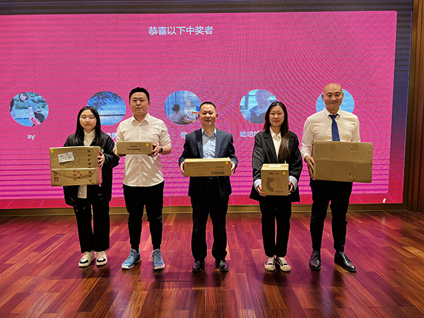 在主持人的主持下,多才多艺的惠州万乘的美女帅哥表演了歌舞等精彩节目,引来一阵阵喝彩声和掌声。而穿插其中的抽奖环节和一个个大奖的诞生,又不断地将晚宴的气氛推向高潮!