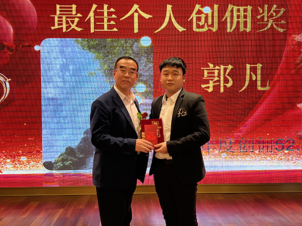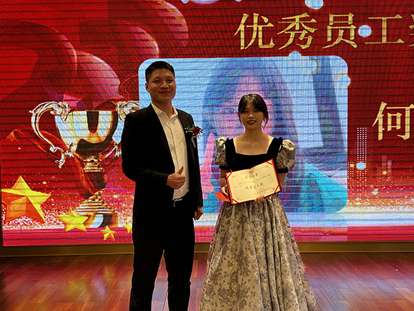 随后,表彰活动拉开序幕。向东副总经理向获得2022年度优秀新人奖、优秀员工奖的2名员工颁发获奖证书和奖金;韩晓总裁向获得优秀团队长奖、年度个人最佳创佣奖、年度最佳创佣团队奖的获奖人员颁发荣誉证书和奖金。